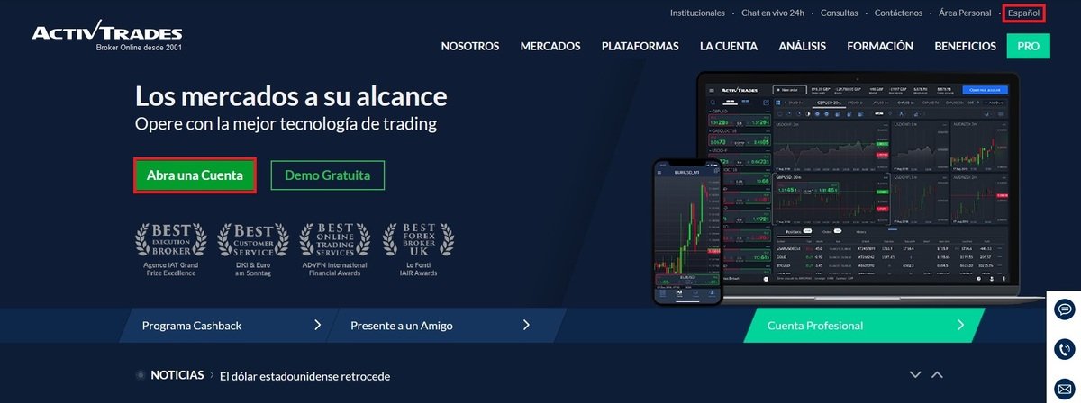 - Accede a la web principal de ActivTrades.