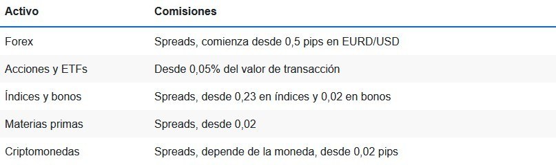 Aunque a la hora de operar con acciones y ETFs si se nos aplicará una pequeña comisión. En la siguiente tabla podemos apreciar cuales son las tarifas que emplea Activtrades en forma de comisión.