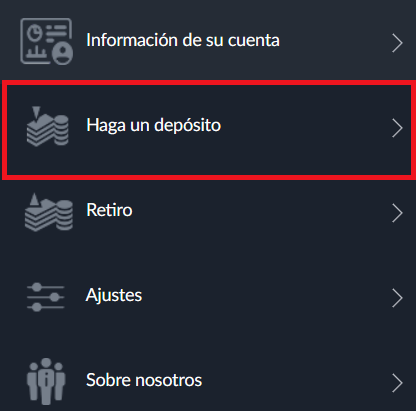 A continuación se desplegará un menú donde encontrarás diferentes opciones, selecciona “Haga un depósito”.