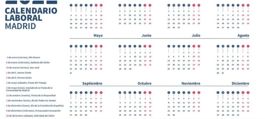 Galería de imágenes Calendario laboral Madrid 2021