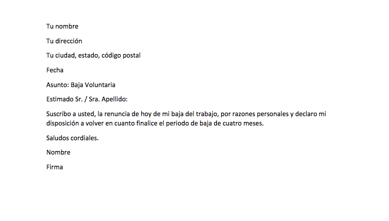 Si la opción elegida para hacer entrega de la baja voluntaria es por carta, ésta va a ser algo más extensa, pero se recomienda que sigas estas pautas.