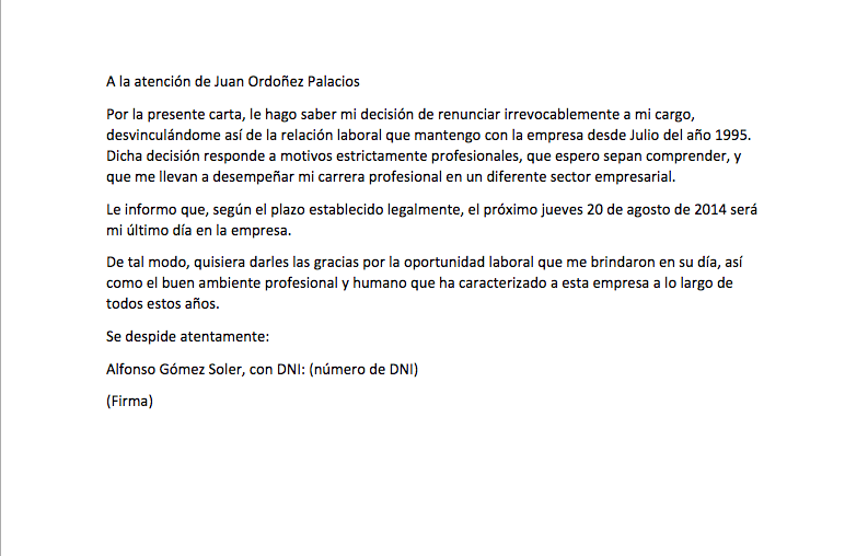 De hecho, en muchos casos basta con adaptar los datos personales y modificarla lo mínimo para presentarla, pues la sencillez en una carta de renuncia puede ser hasta positiva
