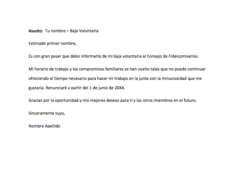 Si vas a enviar la baja voluntaria vía mail, éste es el modelo recomendado para enviar.