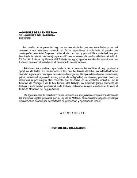 por lo que necesito ayuda de como presentar la carta de renuncia a esta empresa de malos tratos. Puesto que trabajo en otros lugares pero, es diferente el trato.