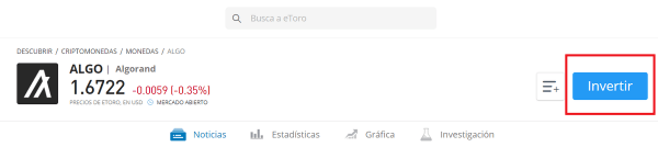 Cuando hayas decidido comprar ALGO, haz clic en “Invertir”.
