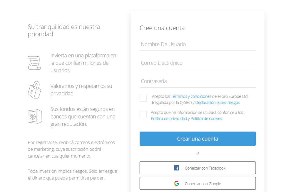 Entra al sitio web de eToro y haz clic en “Comience ahora”.