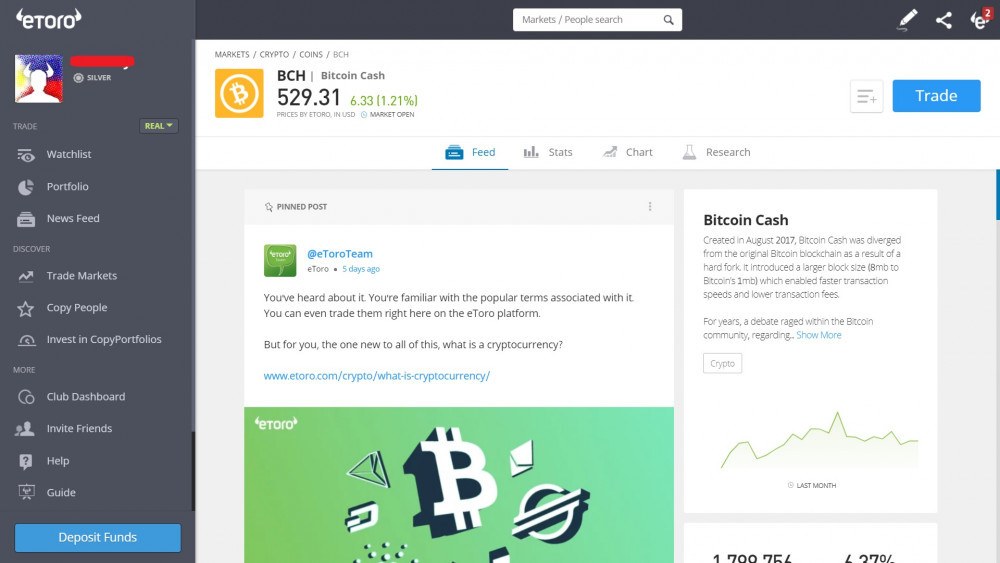 eToro: mejor plataforma para comprar y vender Bitcoin Cash (BCH)