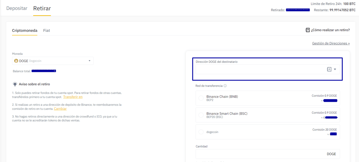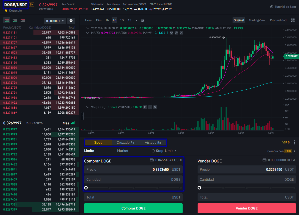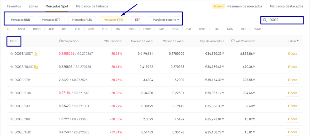 Binance: comprar Dogecoins con BNB, BTC,USDT y ETH