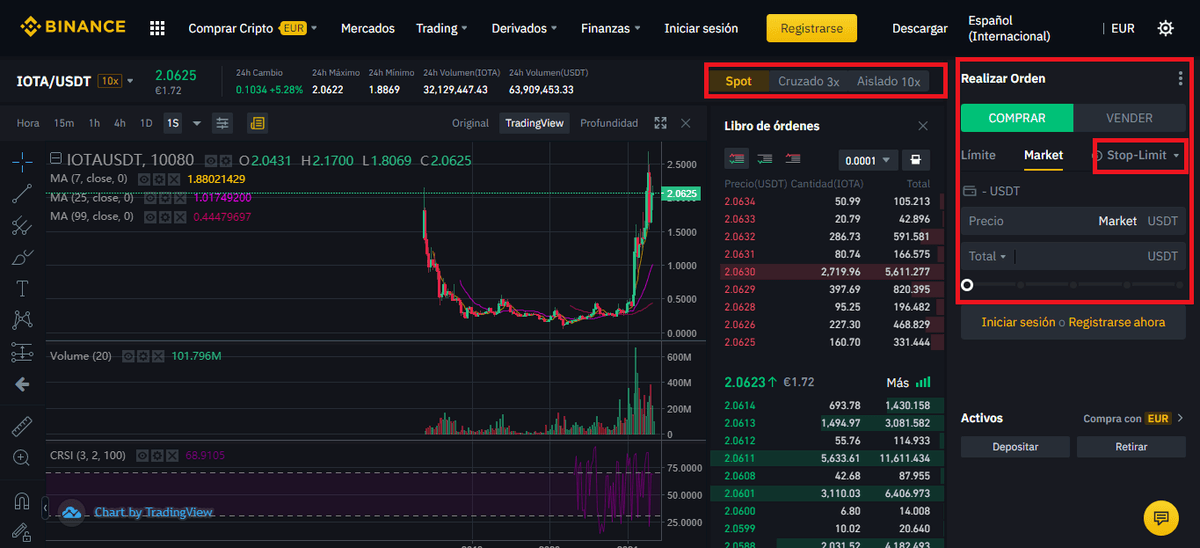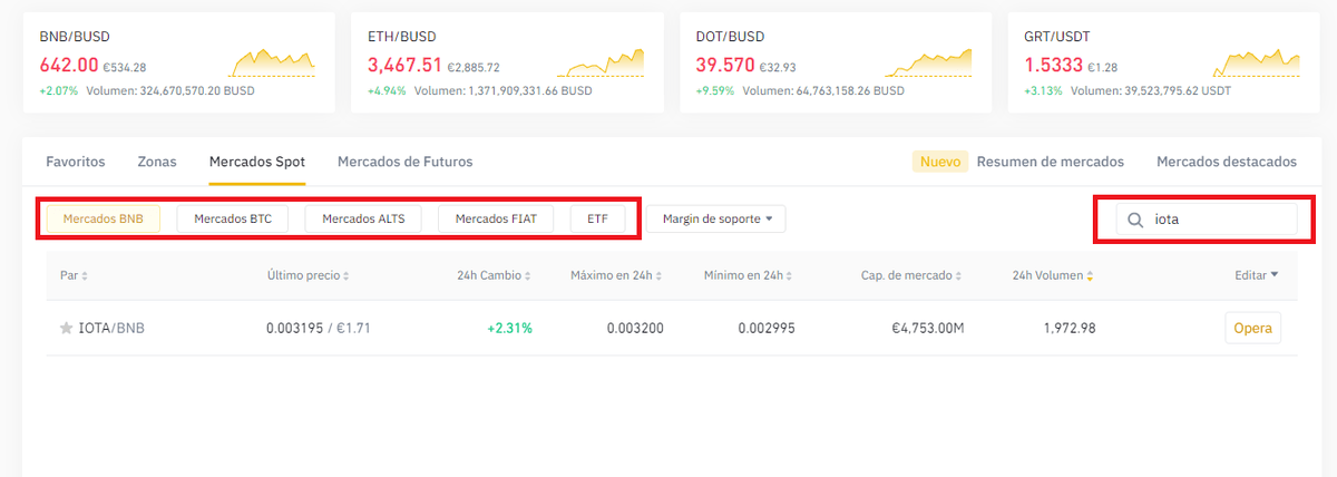 - Comprar IOTA con el par IOTA/Binance coin (IOTA/BNB)