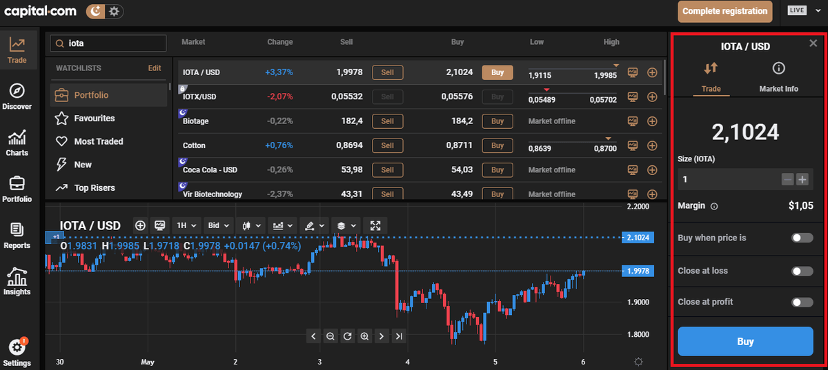- Comprar IOTA mediante CFDs