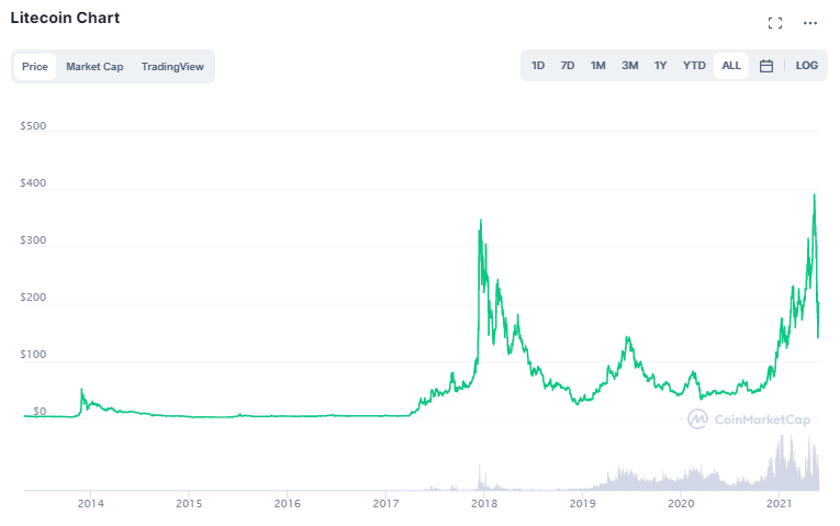 LTC logró un nuevo récord histórico este año antes de estrellarse y caer en más de 70% desde su pico de $ 413 en cuestión de pocas horas. Sin embargo, esto no debería ser una preocupación. Fuera de Bitcoin y Ethereum, las pérdidas en altcoins desde los máximos fueron similares.