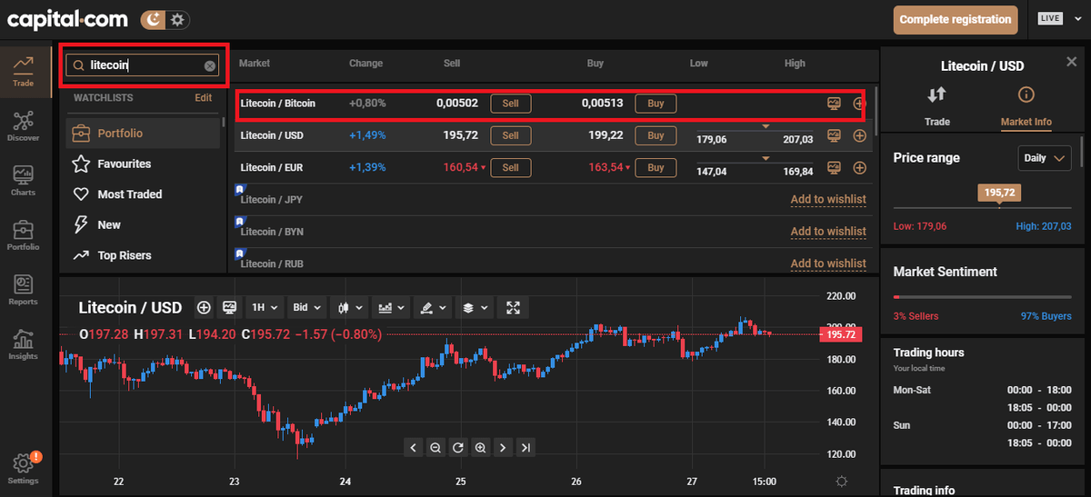 - Buscar Litecoin en la plataforma