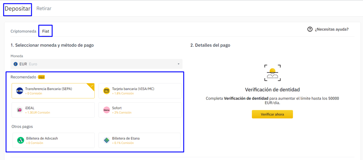 Paso 2. Realizar un depósito en Binance