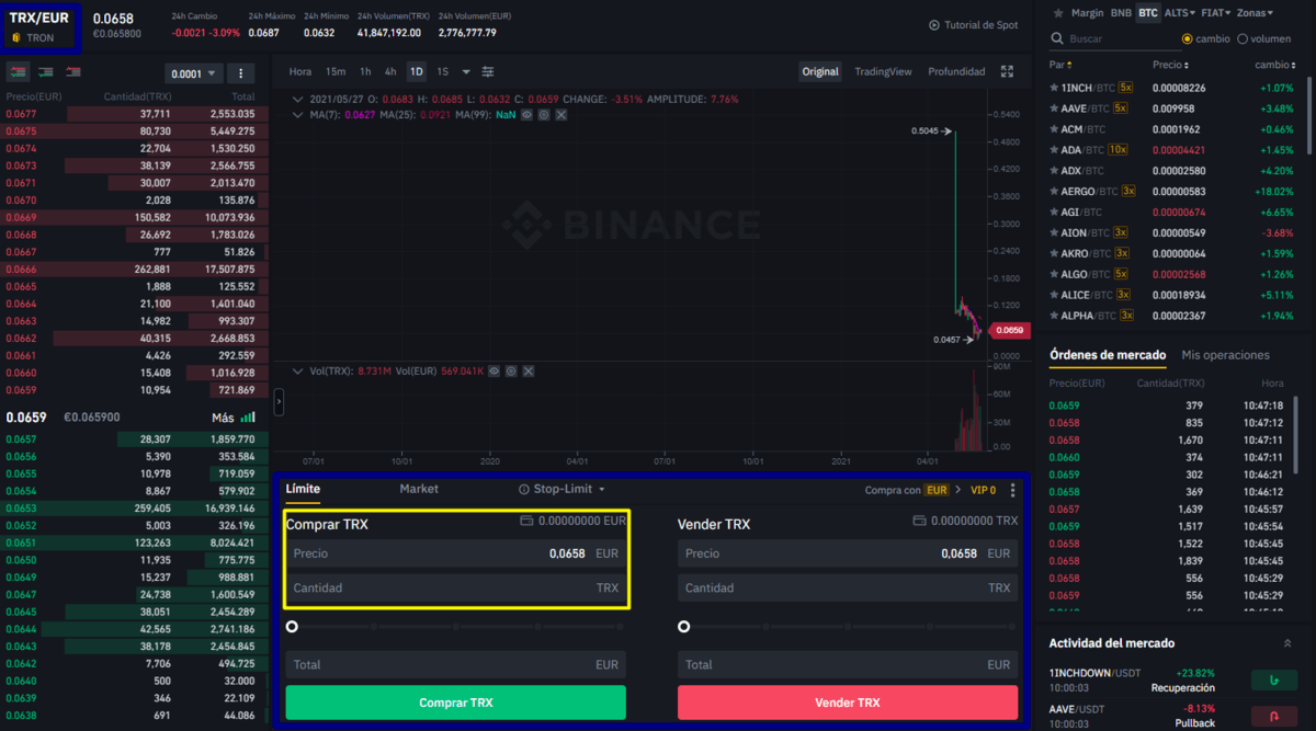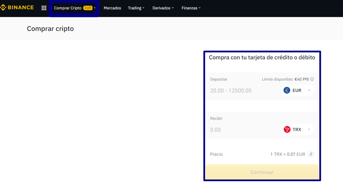 Binance: para comprar Tron con bitcoins u otras altcoins