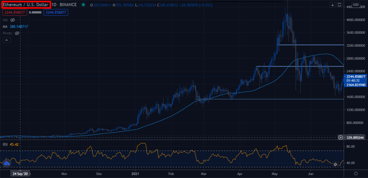 Por otro lado, si hubieras invertido 500€ en septiembre de 2020 ,a día de hoy tendrías 3.500€ si no hubieras vendido. Te mostramos a continuación el gráfico de ETH: