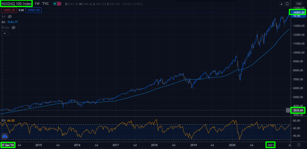Te mostramos como ejemplo cuánto dinero puedes ganar por invertir en el Ibex35. Para ello, veremos el gráfico desde 2020 hasta julio de 2021: