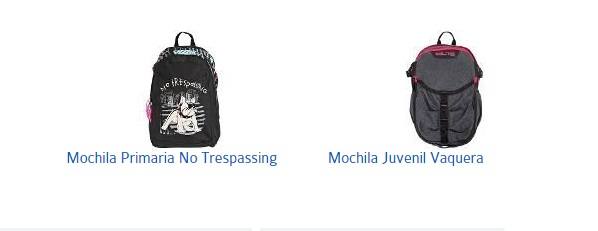 - Mochilas: Mochilas de todos los tamaños y para todas las edades, incluyendo las mochilas con ruedas que evitan que los niños carguen demasiado peso sobre sus espaldas.