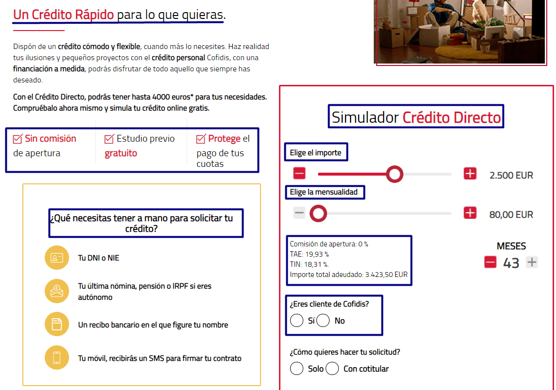 Los mejores y más conocidos a día de hoy son Cofidis, Abanca, Vivus o Liberbank. Nosotros vamos a simular acceder a un préstamo rápido con Cofidis como ejemplo.