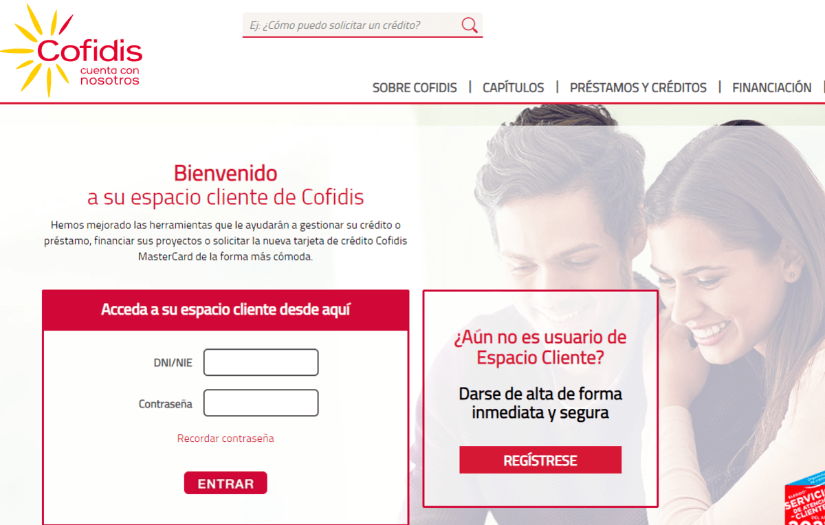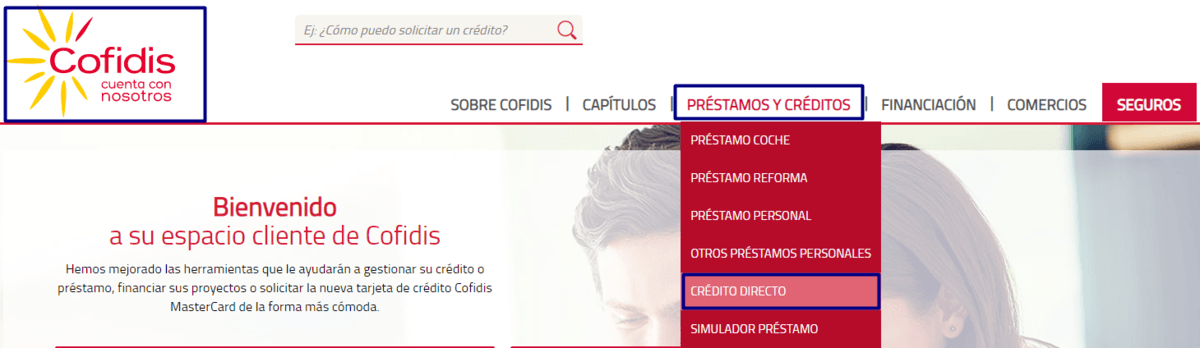 Poniendo de ejemplo una entidad como Cofidis para realizar una petición para adquirir préstamos rápidos online sin nómina, vamos a ver cómo acceder a ellos. En primer lugar accedemos a la página web de Cofidis: