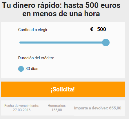 Es otra de las empresas que no piden nómina para concederte el crédito y tampoco le importa si el solicitante está incluido en algún registro de morosos. Se pueden pedir hasta 500 euros, a devolver entre 15 y 30 días.