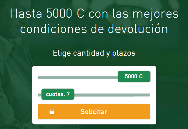 Este préstamo es una promoción Puedes obtener entre 3.000 a 30.000 euros, a devolver en un plazo mínimo de 3 meses y un máximo de 8 años. El préstamo se concede a un interés fijo del 6,95%. Según la información de la empresa, la oferta de préstamo puede variar según los datos facilitados por el solicitante en el formulario.
