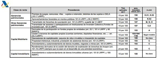 Retención IRPF según ganancias