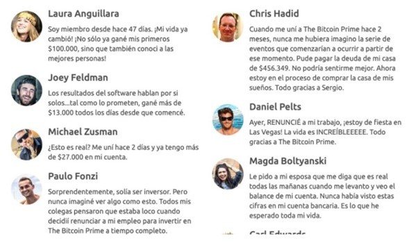 Si un famoso promociona o patrocina algún tipo de producto o sistema de comercio, es más probable que las personas confíen en la fiabilidad de dicho sistema. Si tu pregunta es: ¿Hay alguna celebridad que apoyó a Bitcoin Prime?, debemos decirte que la respuesta es negativa, son falsos.
