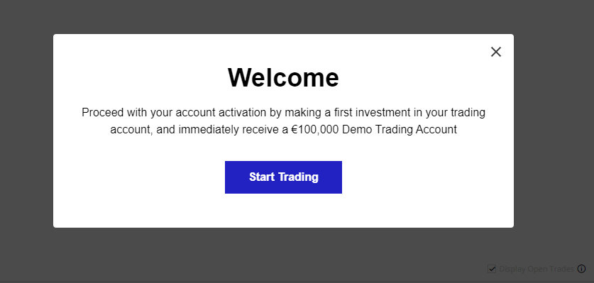 Aclaración importante: antes de depositar dinero, nosotros recomendamos ir a «trading room», donde podremos testear el robot a través de su cuenta demo. Esta es la mejor manera de verificar si es la plataforma que estabamos buscando. La pantalla de abajo nos aparecerá cuando demos click en «trading room». Clicando en «Start Trading» seremos dirigidos a la plataforma virtual: