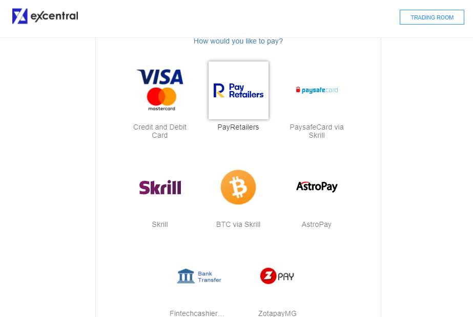 El segundo paso es efectuar el depósito de dinero. Para ello, disponemos de distintos métodos de pago. Podemos utilizar tarjetas de débito y crédito, Skrill, transferencia bancaria y muchos más. En la imágen inferior encontrarán el listado completo: