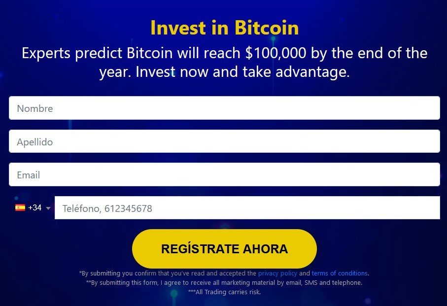 Para comenzar a operar en Tesla Coin crypto lo primero que debes hacer es acceder a su plataforma. Una vez allí deberás rellenar los campos que se solicitan. Para esto debes facilitar tu nombre y apellidos, dirección de correo electrónico y número de teléfono.